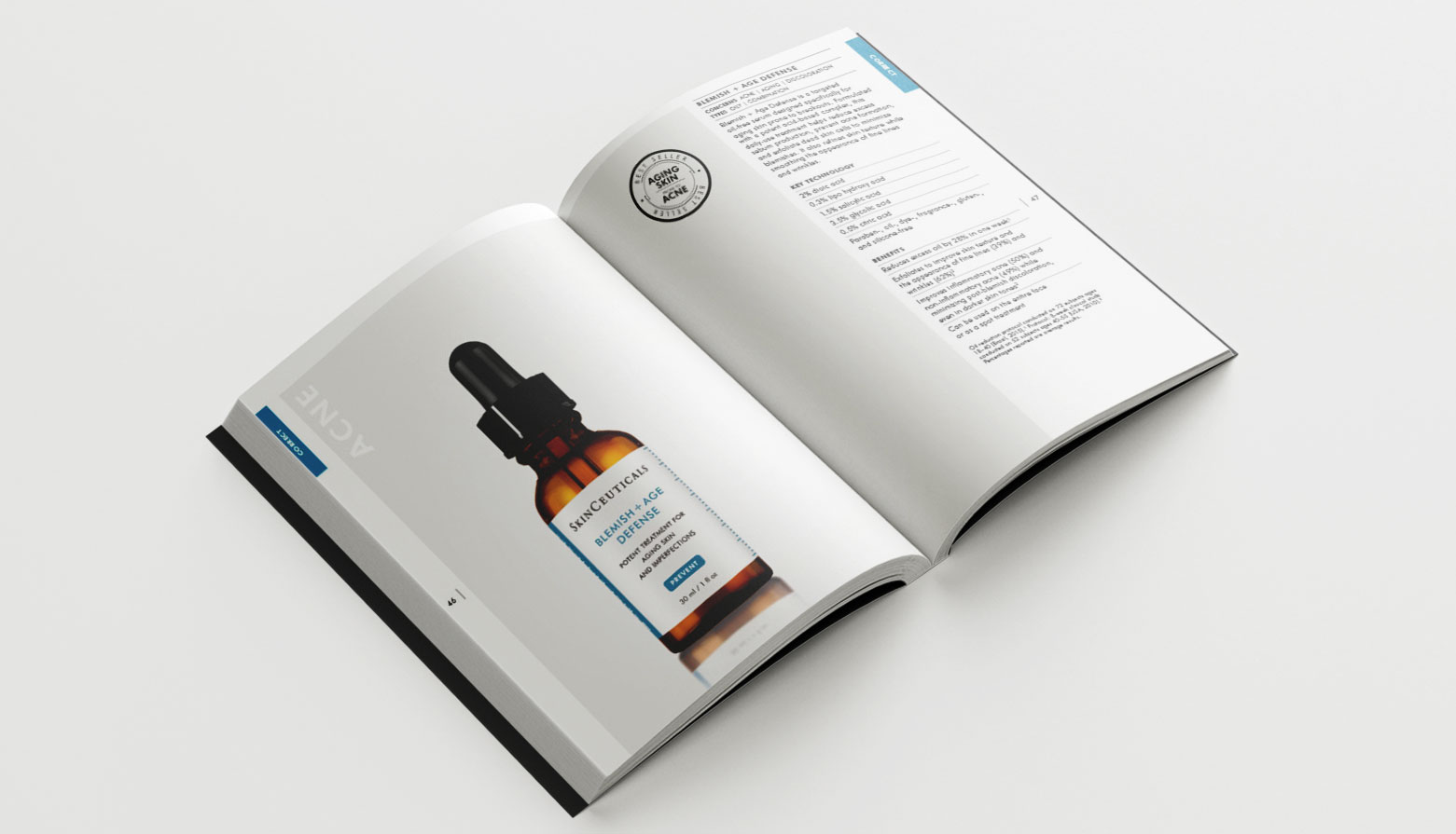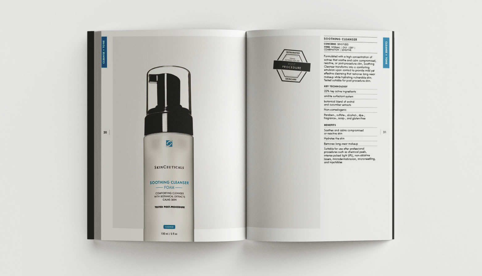 Cover and full book interior design for the Product Guide 2021 to showcase the entire SkinCeuticals product range and spotlight the new releases.