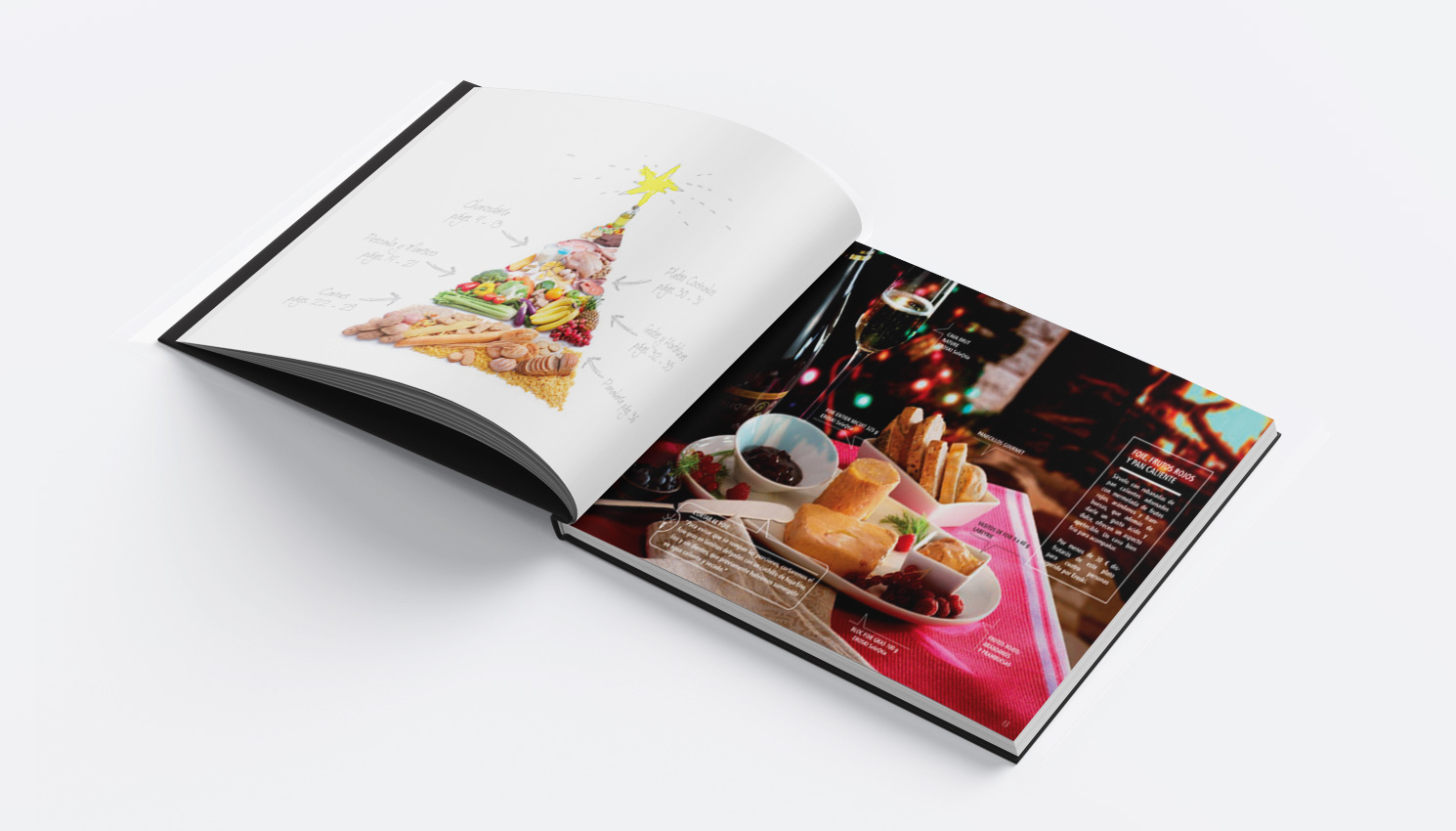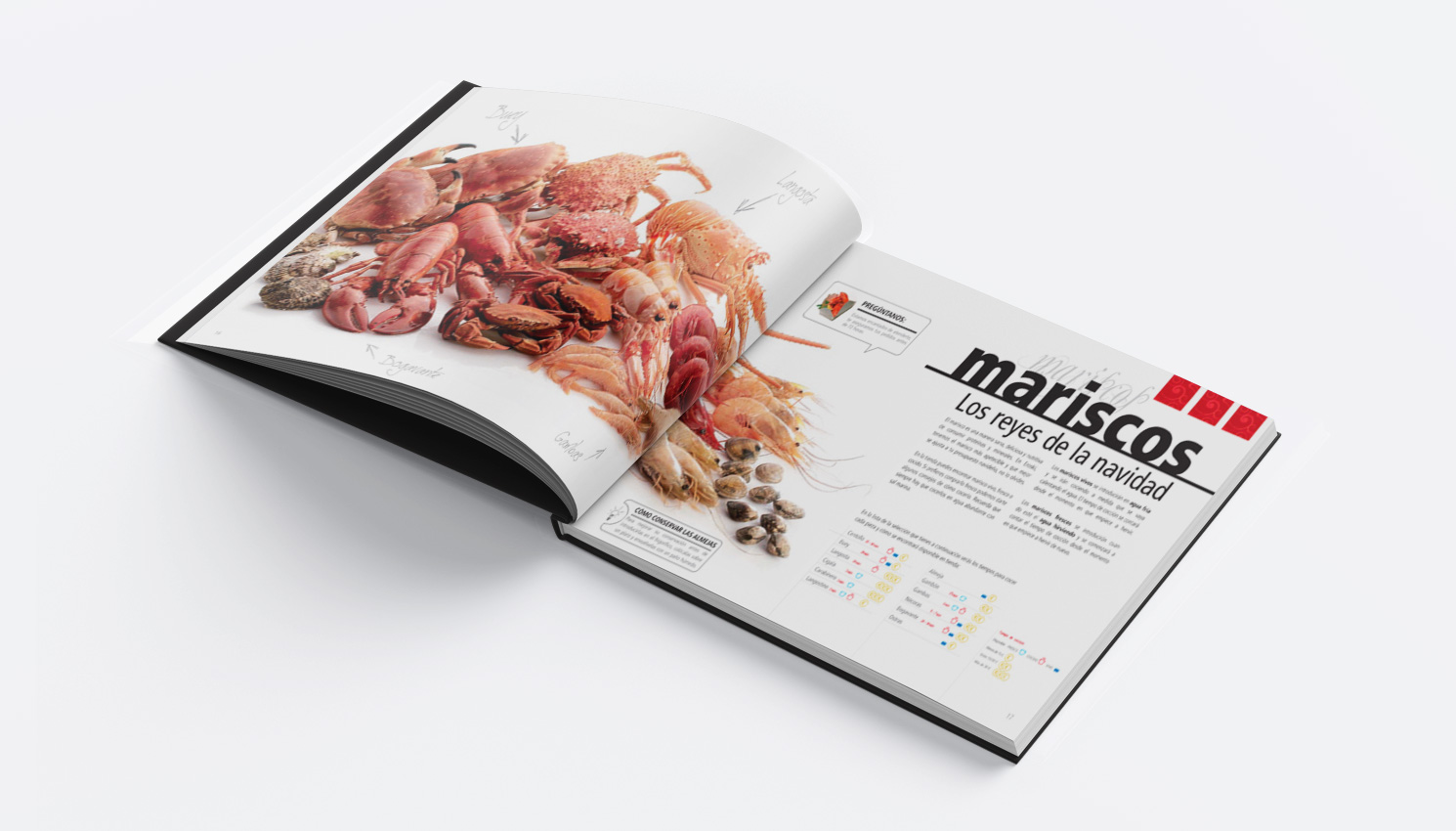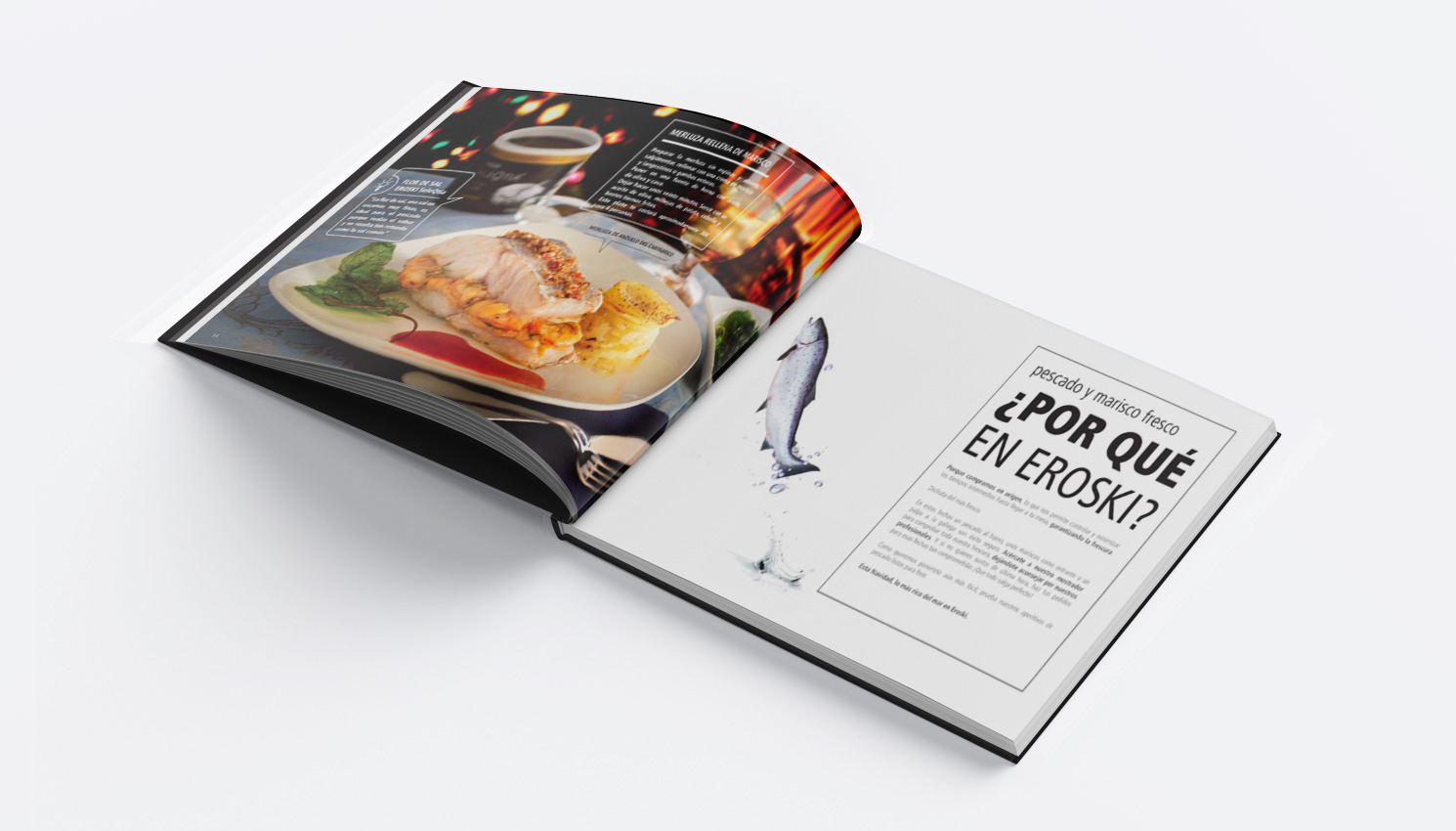 Christmas catalog for Eroski, a multinational supermarket. Besides a regular catalog, we developed a guide with extra content like recipes, food plating ideas, and healthy diet tips.